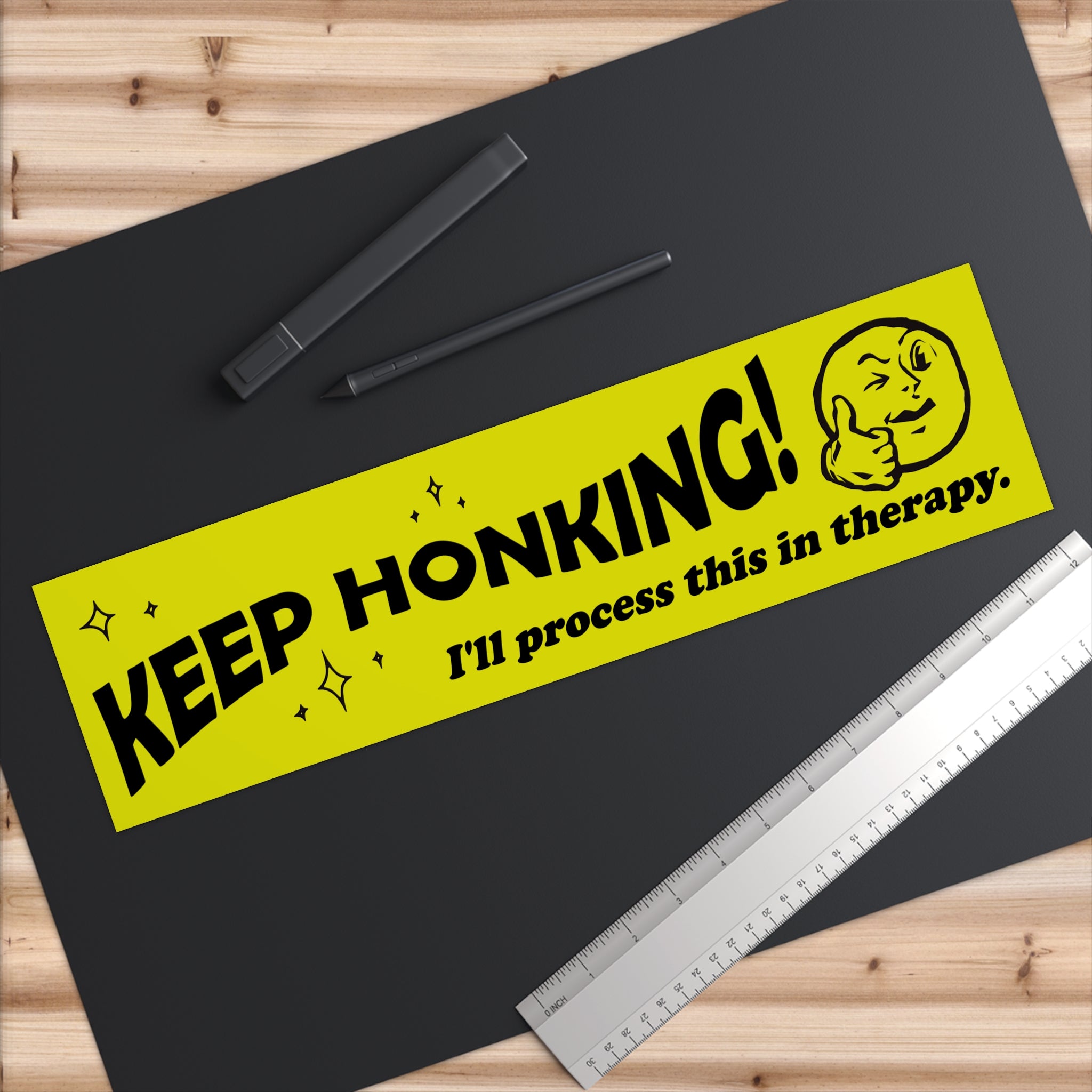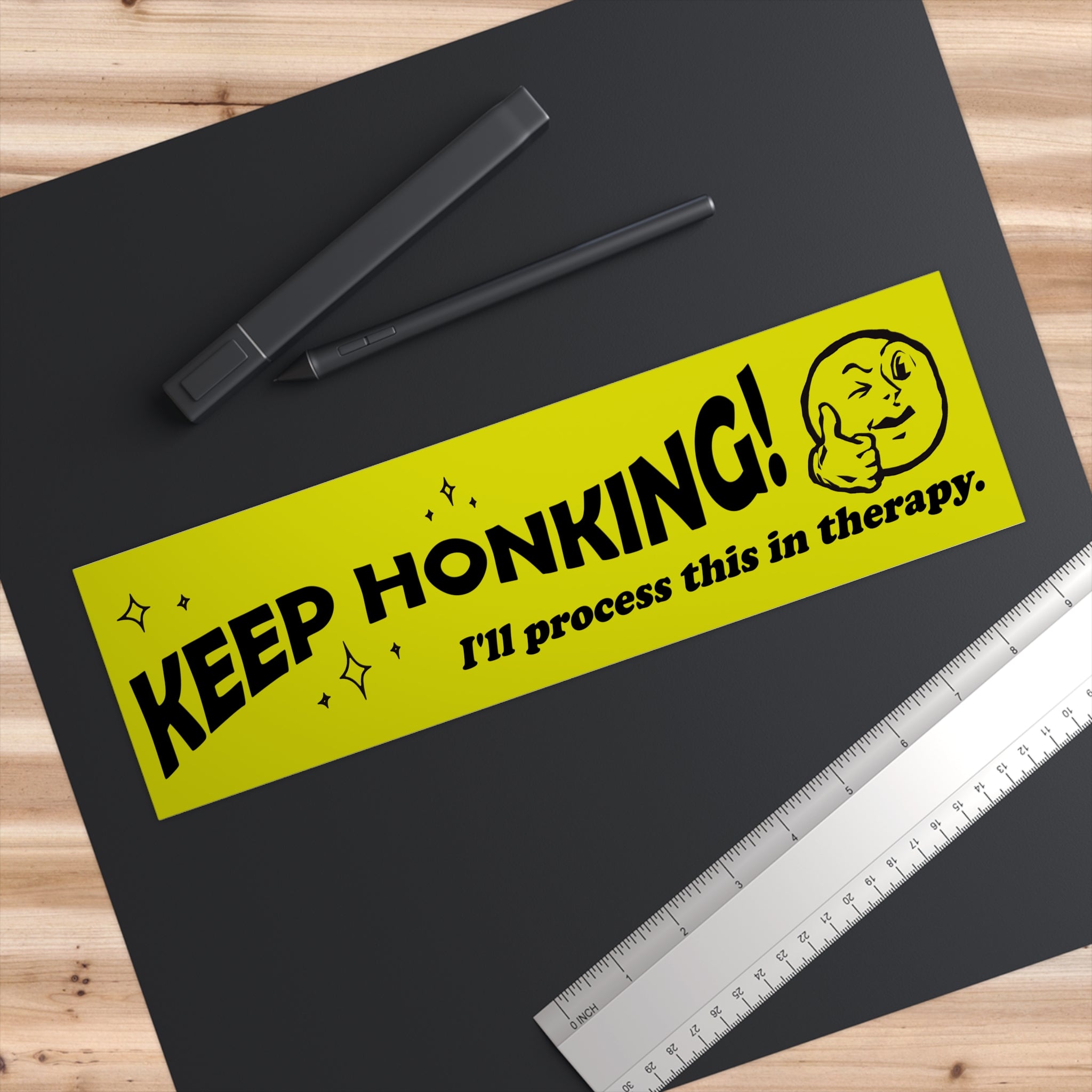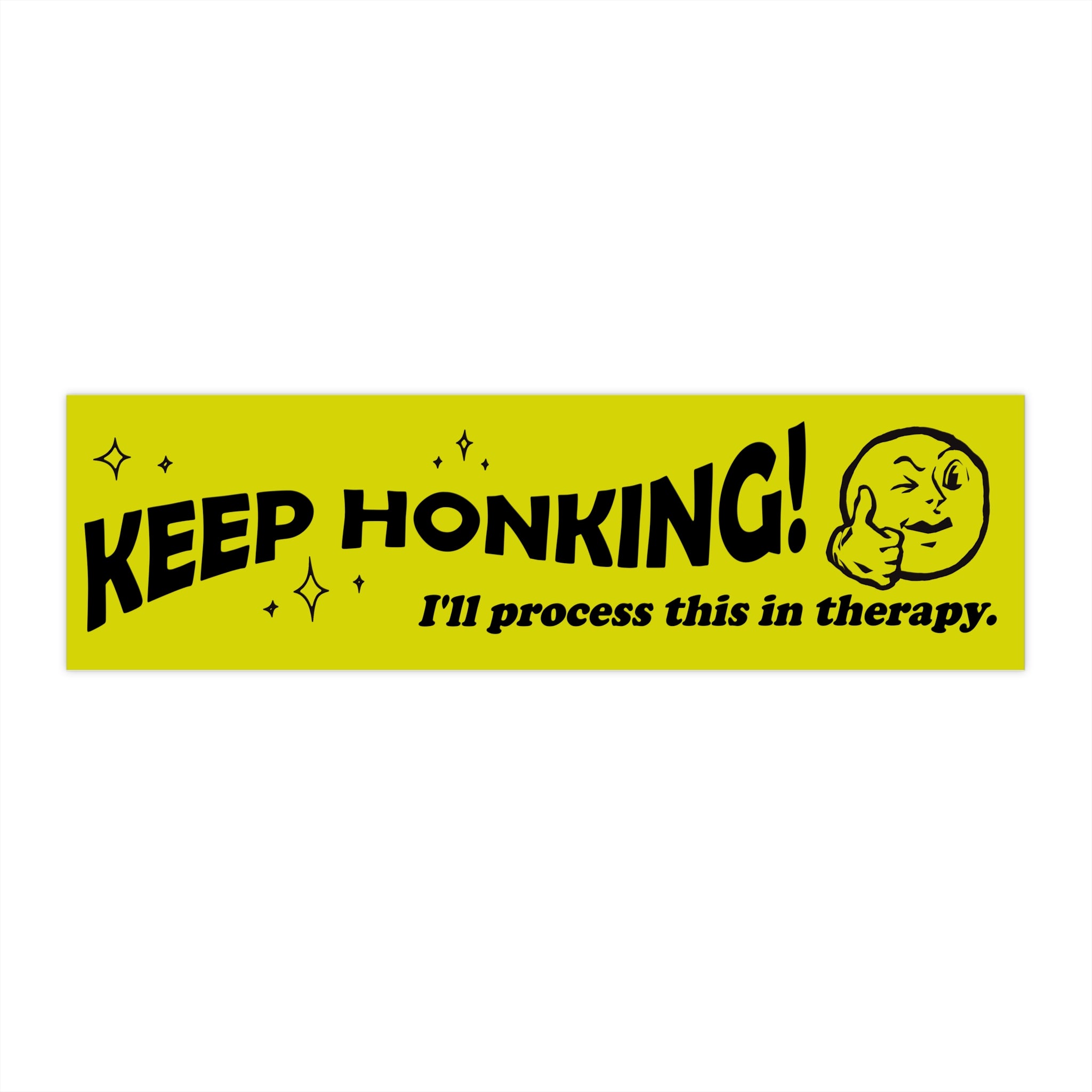 Give your car a sense of humor—and a little emotional depth. This bumper sticker says what so many of us are already thinking: Keep honking, I’ll process this in therapy.