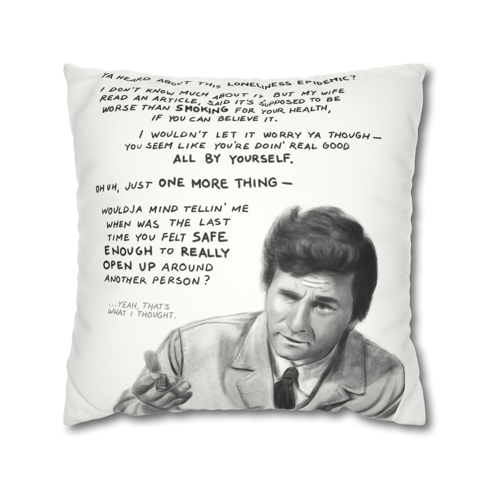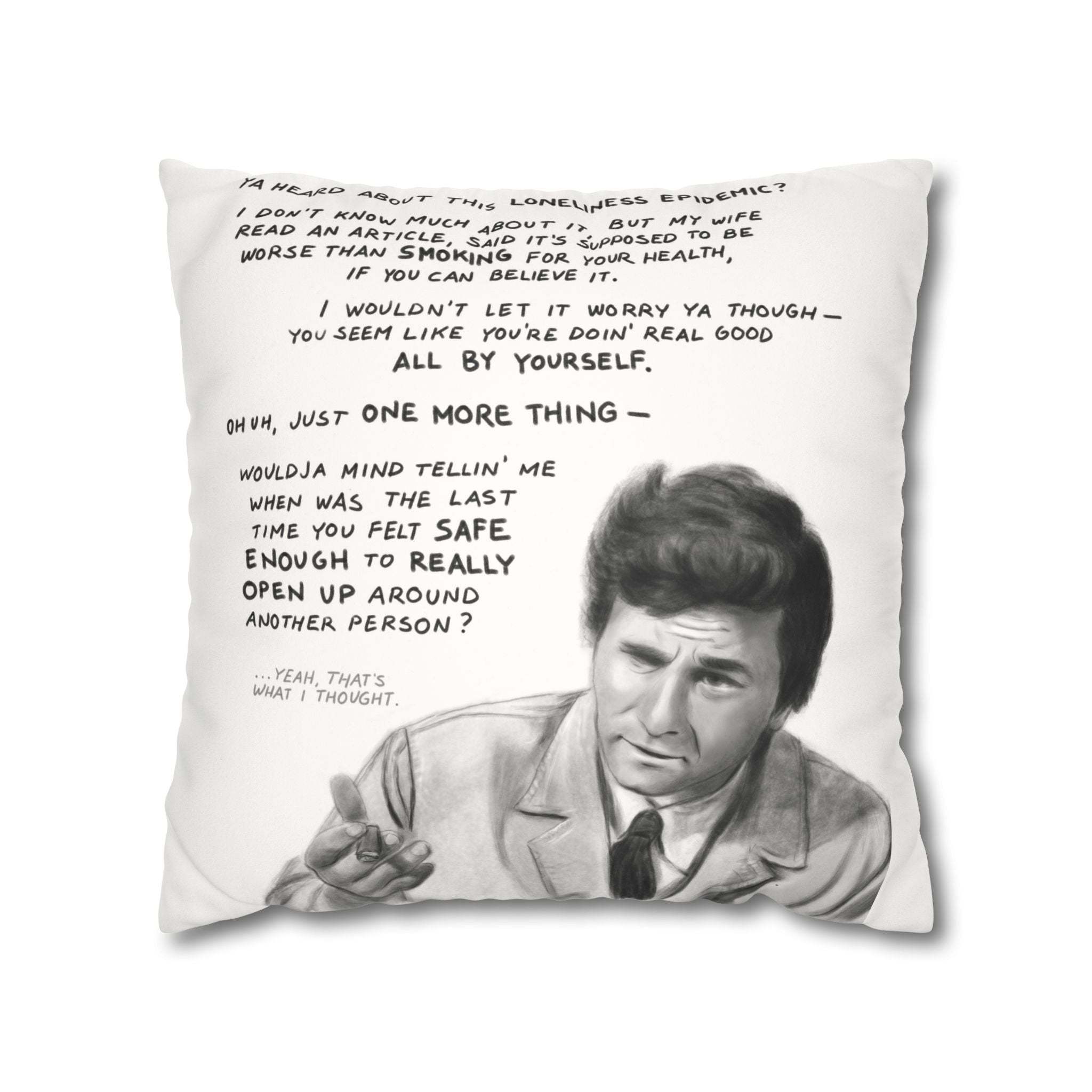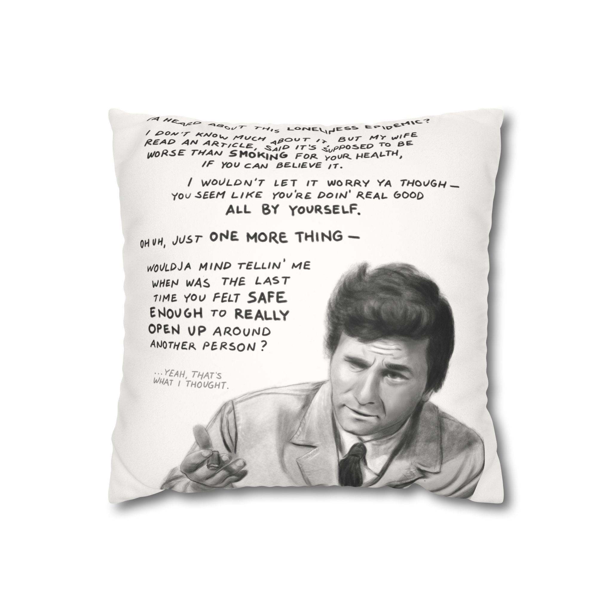 Add a touch of mystery and warmth to your space with this Columbo-inspired faux suede pillow. Featuring original artwork by the Bloomington Center for Connection community, it honors the detective who solved every case through curiosity, connection, and authenticity—just by being himself.