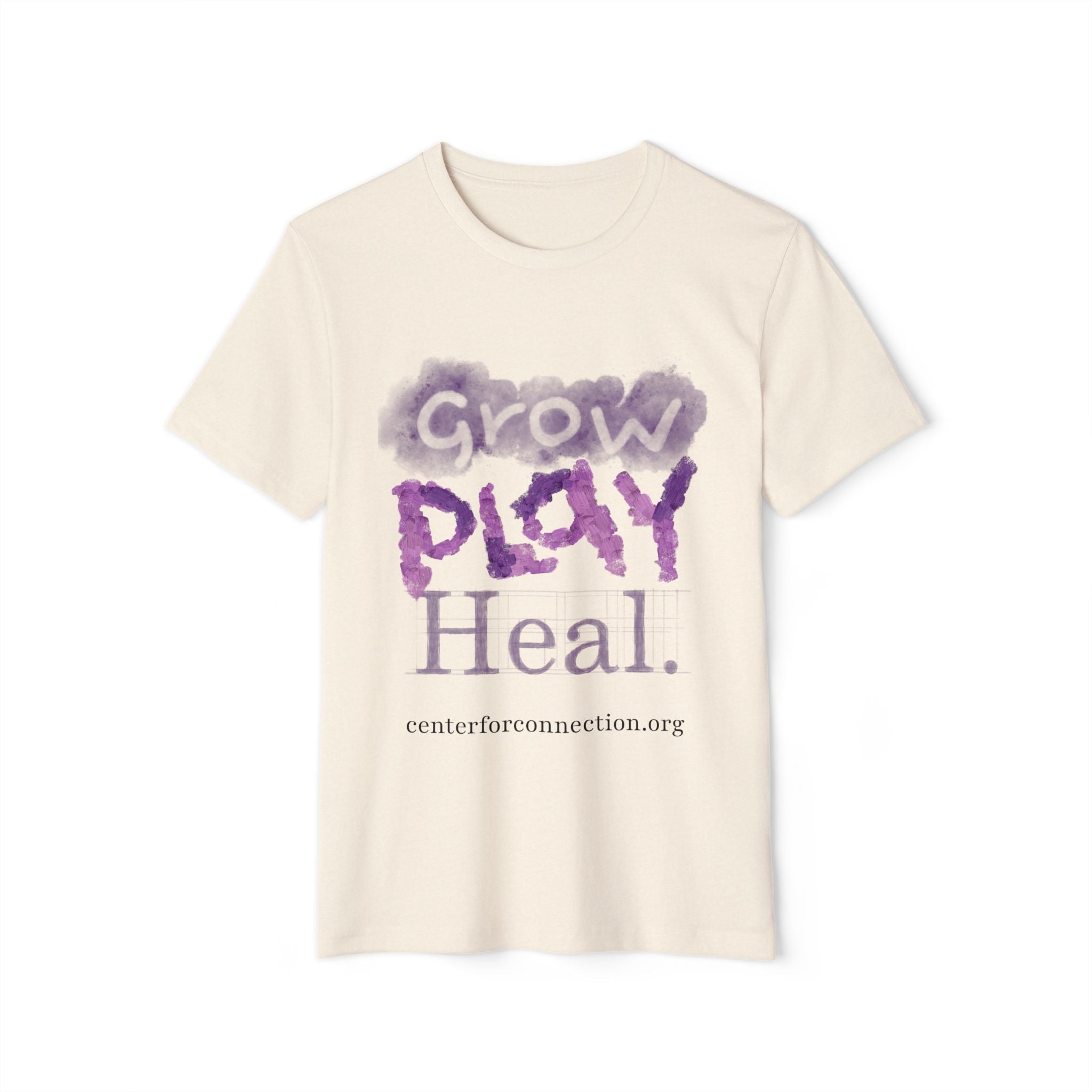 This unisex Grow · Play · Heal tee brings together comfort, sustainability, and heart. Made from a blend of organic cotton and recycled polyester, it’s soft on your skin and gentle on the planet. The semi-relaxed fit and high-cut neckline give it a modern, easygoing feel perfect for everyday wear, creative days, or community gatherings.