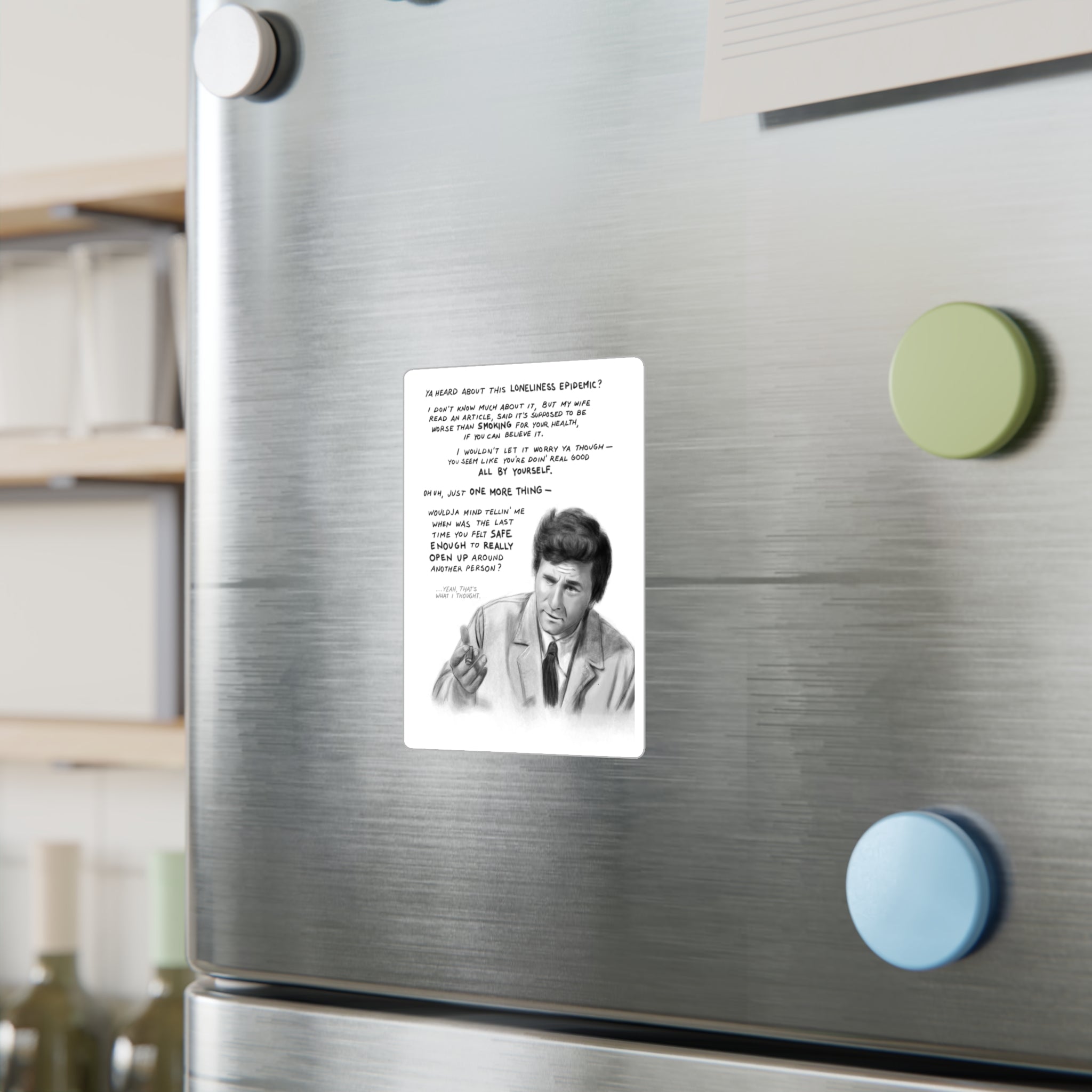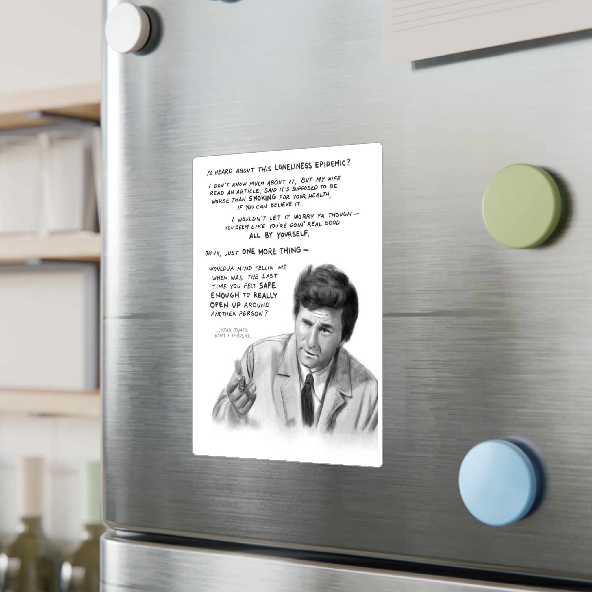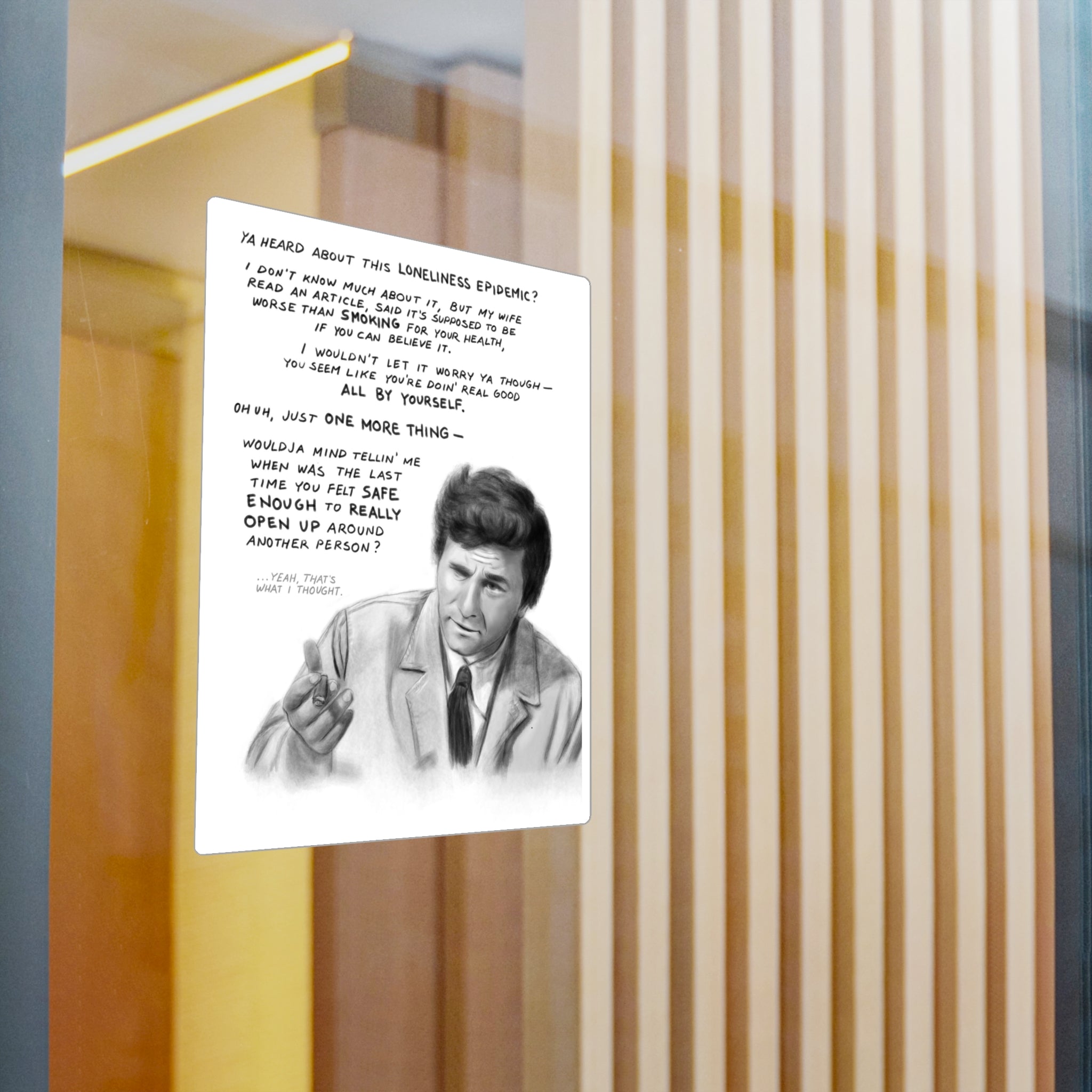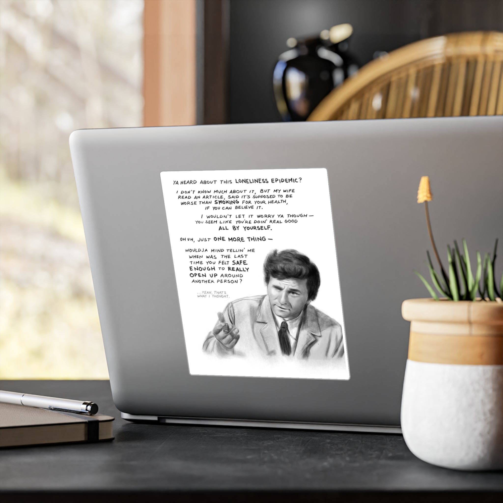 He solved mysteries with curiosity, connection, and authenticity—and now he can help you decorate your laptop, notebook, or water bottle with the same energy. This Columbo sticker features original artwork created by the Bloomington Center for Connection community, celebrating everyone’s favorite rumpled detective and his gentle knack for getting to the truth.